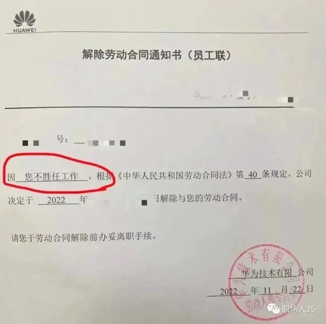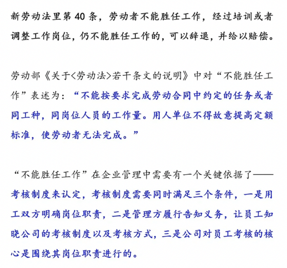 看到华为的这张《解除劳动合同通知书》,没有一句废话。简明扼要地写清楚核心信息。什么原因:您不胜任工作;什么依据:《中华人民共和国劳动合同法》第40条规定(特意去找了下这个法律条款,如下图);什么行为:解除劳动合同;什么时间:xxxx年月日,以及通知你办妥离职手续。