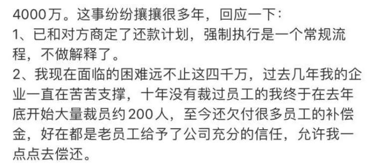 不久之前,他由于欠下4000万的债务,遭到了法律的强制执行,一时间成为了热搜的焦点。