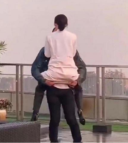 在这张照片中,李沁身穿一件白色大褂,犹如一只小树袋熊悬挂在男主黄景瑜的身上。黄景瑜身穿牛仔服,脸上带着宠溺的表情回应,看起来就像一位满满的男友。他们的CP感十足。