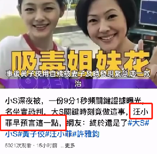 考虑到小S的生活方式,她似乎很喜欢与人“合作”犯罪,无论是强迫吸毒还是参加派对,都是三人以上的小团体活动。如果她真的被捕,那么牵连其他人的可能性很大,其中可能性最大的就是她的亲姐姐大S。