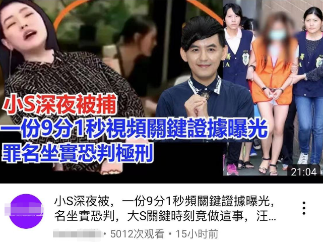 小S似乎在做事之后,总要留下足够的“证据”,她的每一个过激行为,都会被手机记录下来。这次被捕时,台湾媒体还透露,警方泄露了一段长达9分钟1秒的视频,其中充满了小S的犯罪证据,只是媒体并未公开播放。