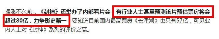 有着顶级特效和实力派演员,《封神》的目标是达到80亿的票房,甚至希望超越《长津湖》的57亿,成为影史第一。