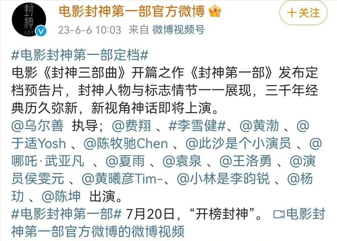一部充满野心的电影,《封神》,已经正式宣布将于7月20日在国内上映。
