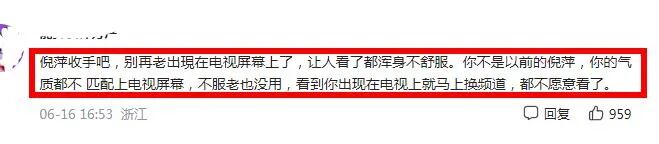 "倪萍请收手吧,别再频繁出现在电视屏幕上了,让人看了都感到不舒服。"
