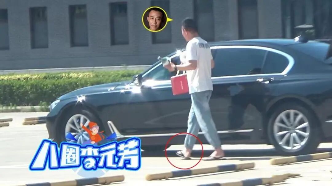 他的穿着朴素平实,头发稀疏,从背影看来,已经显示出了岁月的痕迹,没有任何明星的风范。尽管他出门是为了聚餐,但他穿着一双夹趾拖鞋就出门了,看起来十分随意。