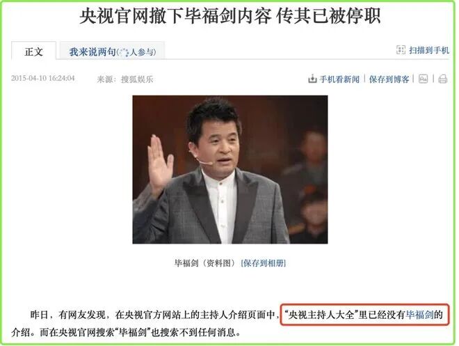 而毕福剑在公开道歉后,离开了他辛苦打拼的央视,消失在了公众的视线中。