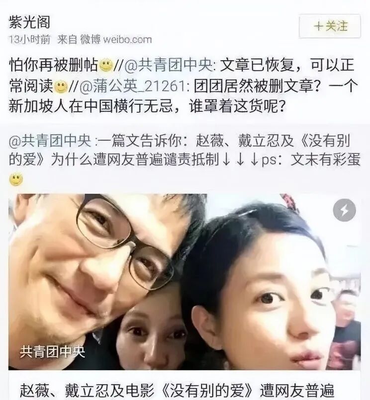 在一个骚动不断的公众舆论氛围中,赵薇成功地完成了她的电影拍摄。但当电影拍摄告一段落,赵薇却"有意"地在社交媒体上发布了一张与戴立忍的合照。