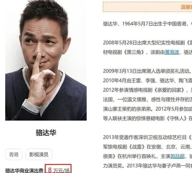 因此,尽管他并非专业的歌手,唱歌实力也许并不出众,但他的专业态度和综合表演能力使他成为各大酒吧热衷邀请的嘉宾。现如今,骆达华的出场费也逐渐水涨船高,比他过去演戏的片酬还要可观。