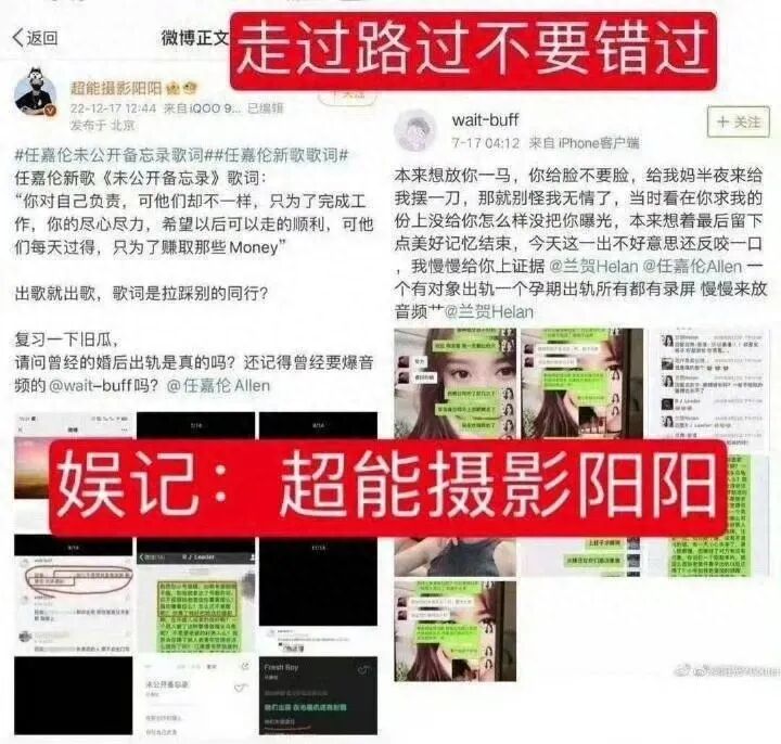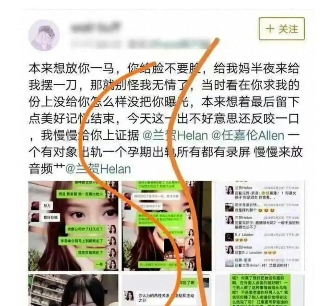 这位网友在其博文中详细指出了一些细节,如“孕期出轨”、“知三当三”、“欢度春宵”等,还特意@了任嘉伦、任嘉伦工作室以及兰贺的名字。可以说,这次曝料非常直接,没有遮掩。