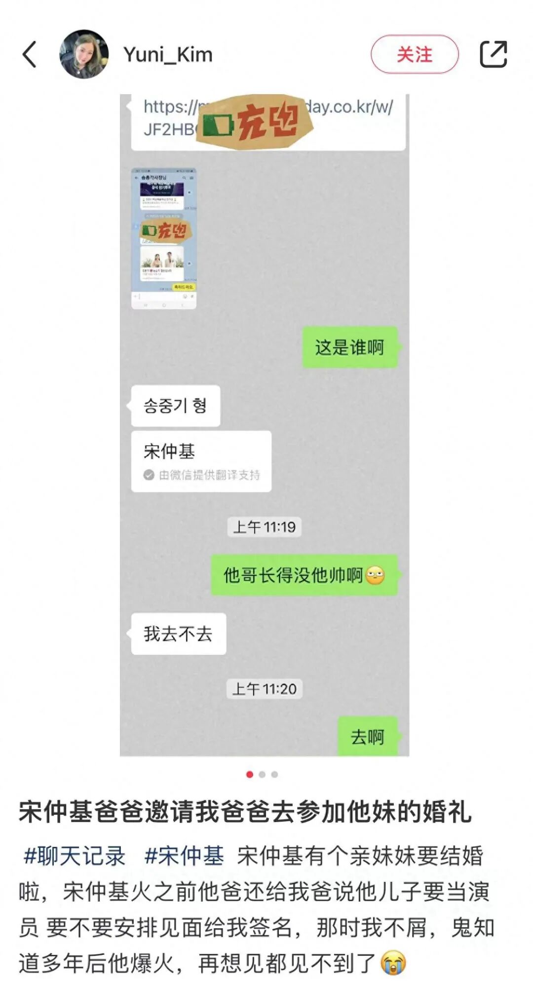 原来,这位网友的父亲与宋仲基的父亲多年来有着深厚的交情,两人在生意上有着密切的往来。此前宋仲基与宋慧乔结婚时,宋父曾邀请过网友的父亲,可惜那时网友的父亲因事无法赴宴,错过了一场世纪婚礼。