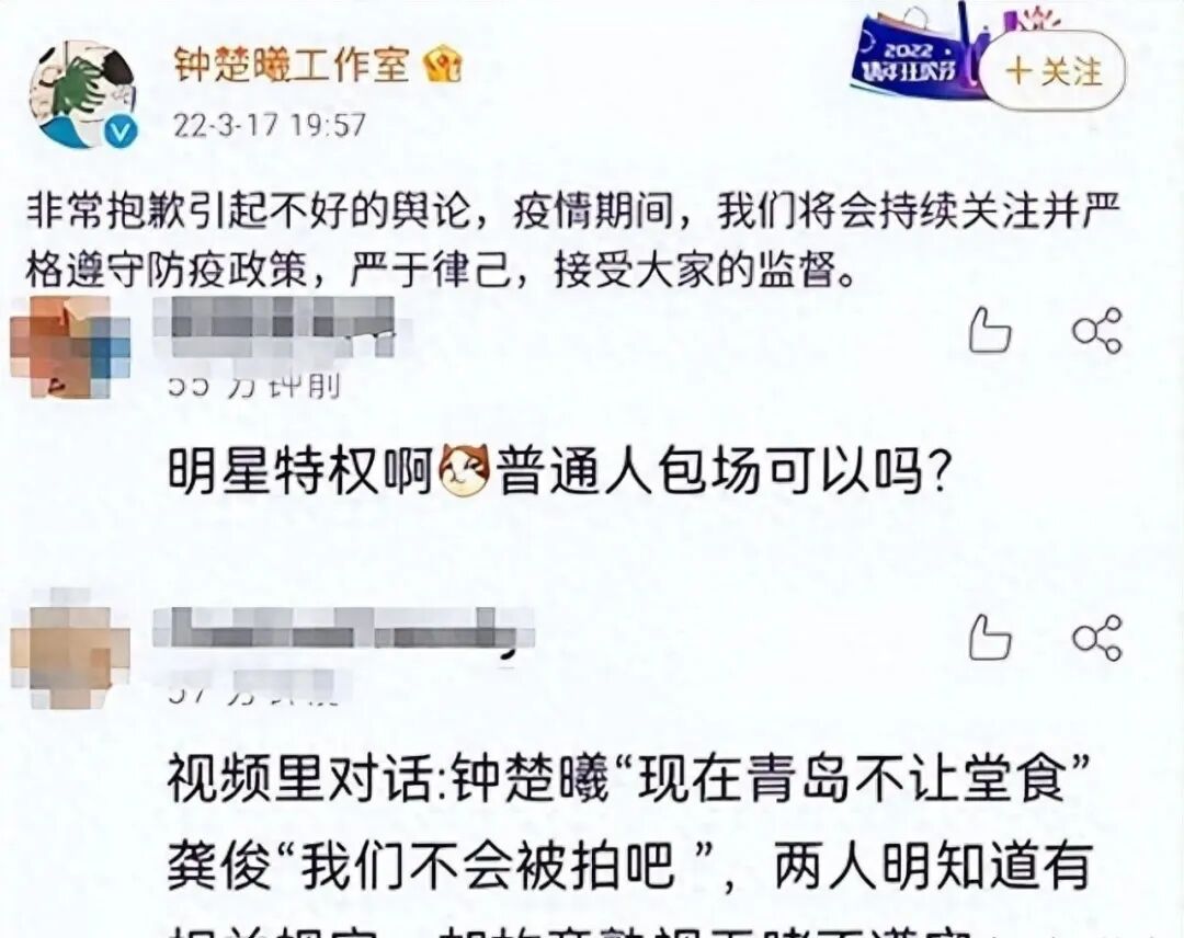 更离谱的是,钟楚曦在疫情期间犯了个低级错误。她和龚俊在青岛拍戏,地区内明令禁止堂食,可她却一副“我是明星我最大”模样,硬生生要求堂食,搞得整个剧组都跟着她嗷嗷待会。虽然事后她的团队赶紧道歉,可大众对她的印象已经打了个折扣。