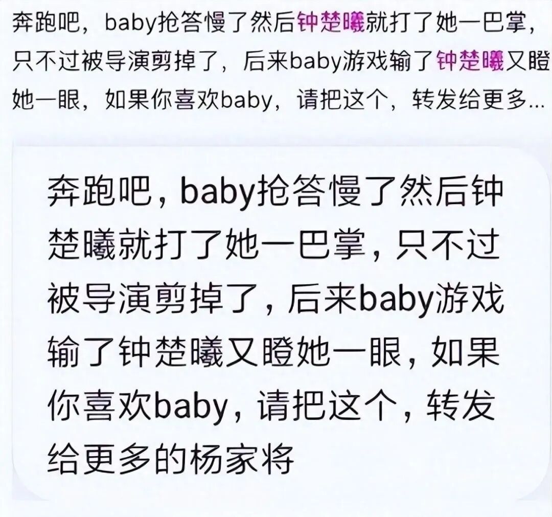 而且,传言还说,钟楚曦在杨颖游戏失败的时候,居然冷眼旁观。这一幕估计太过火辣,编辑组都觉得有点撕不得。虽然钟楚曦的团队和杨颖都辟谣了,可这火药味实在太浓。