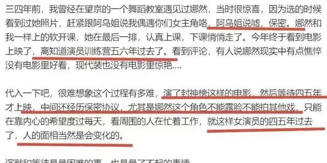 可惜观众的目光都落在了当时最红的王一博身上,她并未得到应有的关注。饰演妲己的娜然因签署了保密协议,五年时间里不能接其他戏,必须保持神秘感,一个女孩从21岁一直演到26岁,如果成功了就皆大欢喜,但如果失败了,要承受的将是一去不复返的青春。