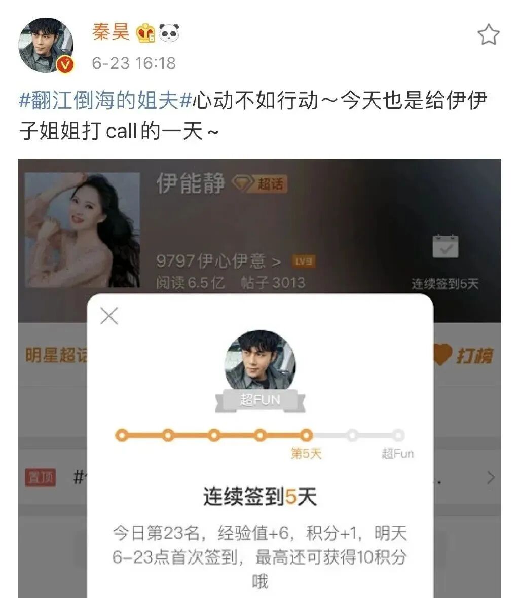当伊能静参加《浪姐》节目时,秦昊宠溺地发文支持她:"行动胜于心动!今天是为伊伊子姐姐加油的一天!"