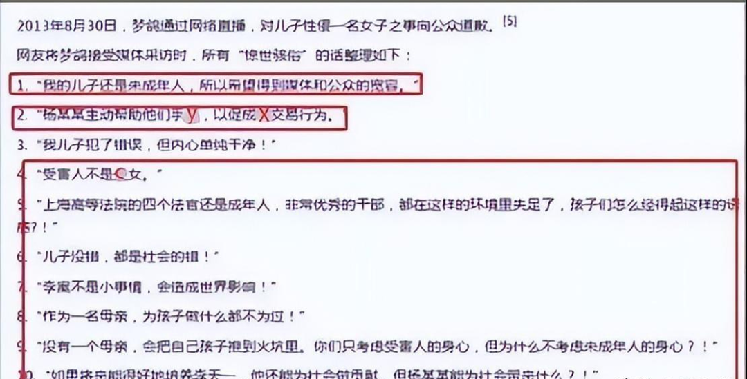 与此同时,梦鸽还试图操控舆论,声称女孩本来就心怀不轨,声称她并非处女,是她主动勾引,而她的儿子还只是个年幼的孩子,定力不足,在上当受骗后被女孩敲诈勒索,未能成功才不得不报警指控自己儿子强奸她。