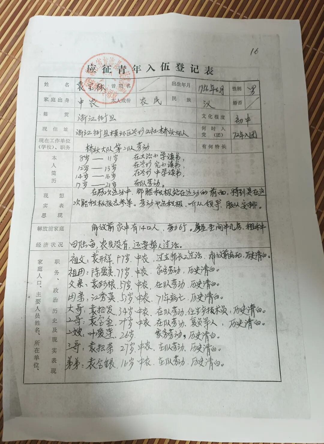 我叫袁庆林,今年67岁,老家来自浙江衢县(如今的浙江龙游县),我是1972年2月入伍的,在浙江省杭州市公安局消防营服役。