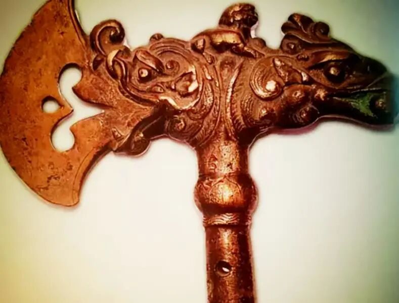 专家看到斧头上精美的花式,并且根据斧头的形态推断为属于辽代时期的宝贝,通称钺,是那时作为礼物献给皇帝,虽然不是属于金制品,但也是一件具有很高价值的历史文物。