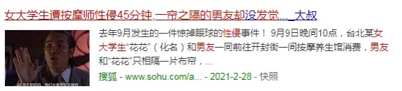 这是发生在台北的一个真实事件。一个名叫芳芳(化名)的女生由于身体不适,便跟着男友到附近的一家按摩馆做按摩减压。养生馆的场地并不大,老板在10平方的地方摆了4张床,在转角的位置,老板装上了窗帘,拉开窗帘可以看到老板又在里面摆上了2张床位。
