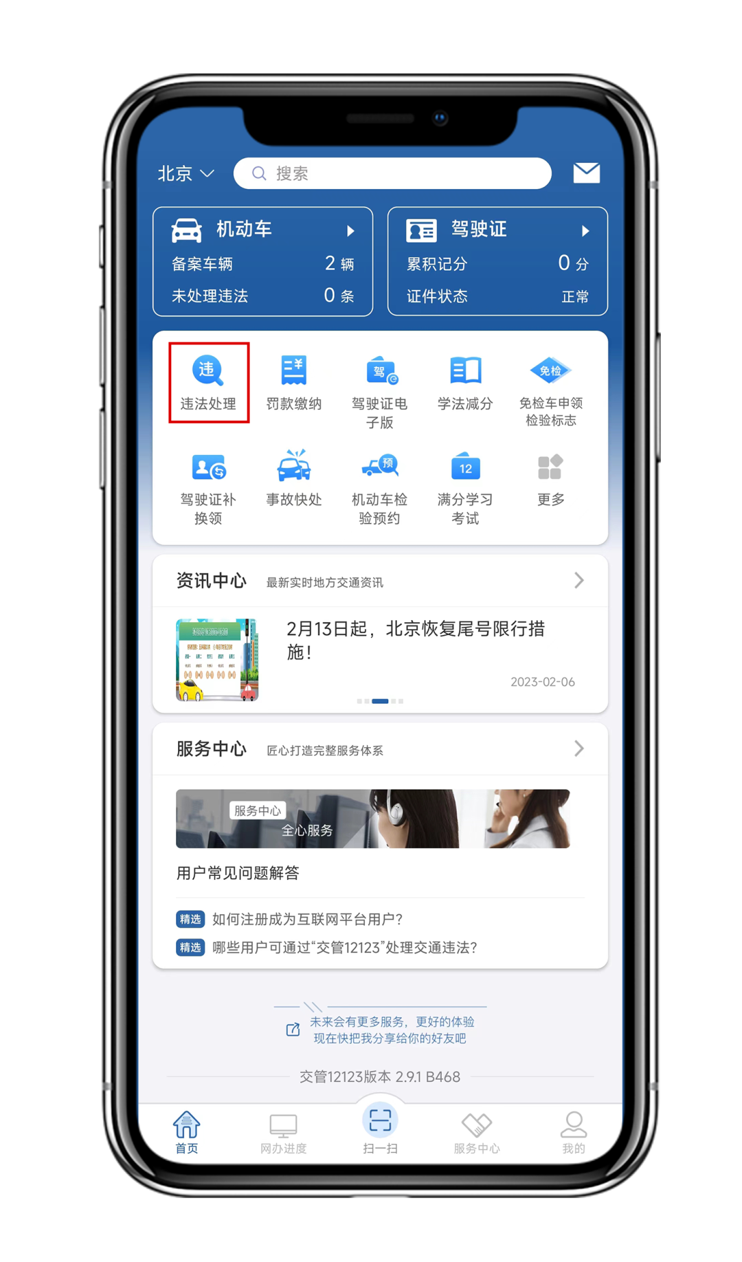 1、如果是您自己名下的车辆,当被“电子眼”抓拍到了违章情况,首先可以尝试使用“交管12123”APP进行查询和线上处理,此方法不受地域的限制。