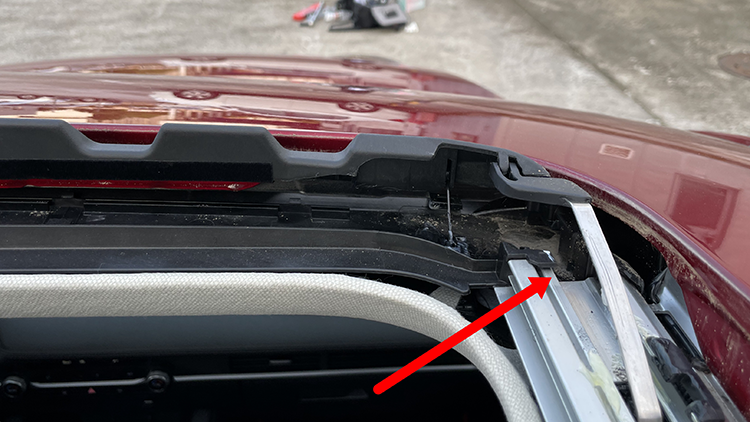 天窗与车身间存在一定间隙,很难完全杜绝雨水渗入。为此,在天窗下方设置有集水槽和排水管,只要渗入的水量小于排水量,就能确保雨水不会流入车内,但是狭窄的排水管也容易被柳絮、泥沙等异物阻塞。所以,需要在雨季来临前清理集水槽中的飞絮、树叶等异物,然后向排水孔附近倾倒少量清水,观察积水能否顺利排出,如果发现排水不畅,可到店进行专业处理。