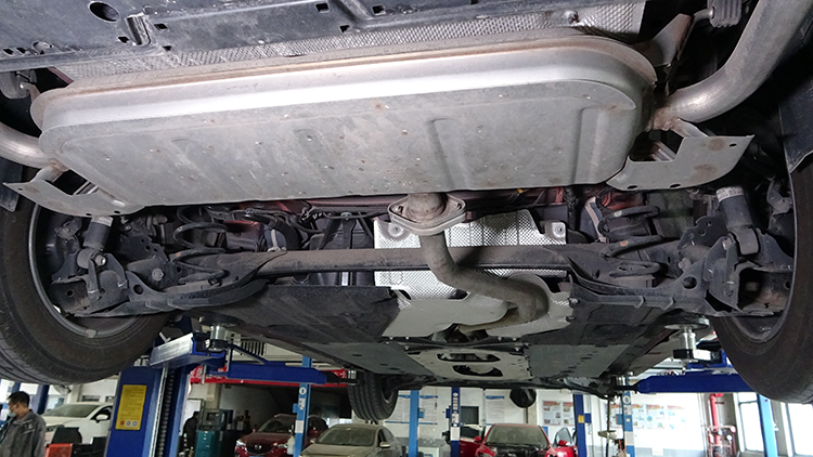 对于底盘的检查包括底盘是否有漏油、漏水的痕迹,减振器是否存在漏油失效问题,以及刹车盘片是否达到磨损极限等。如果您自驾的路况比较差或者出现过“托底”情况,还要重点检查发动机和变速箱的油底壳、悬架系统的连杆以及整个排气系统是否存在磕碰变形或其他损伤。