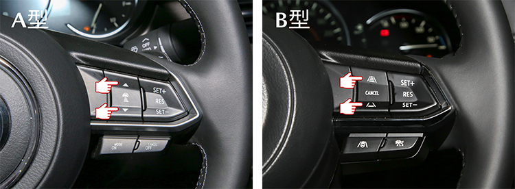 按下方向盘上的MODE开关(A型方向盘)或MRCC 开关(B 型方向盘),MRCC系统就会进入开启状态,显示屏中白色的MRCC指示灯点亮,接下来即可设定车速和跟车距离。
