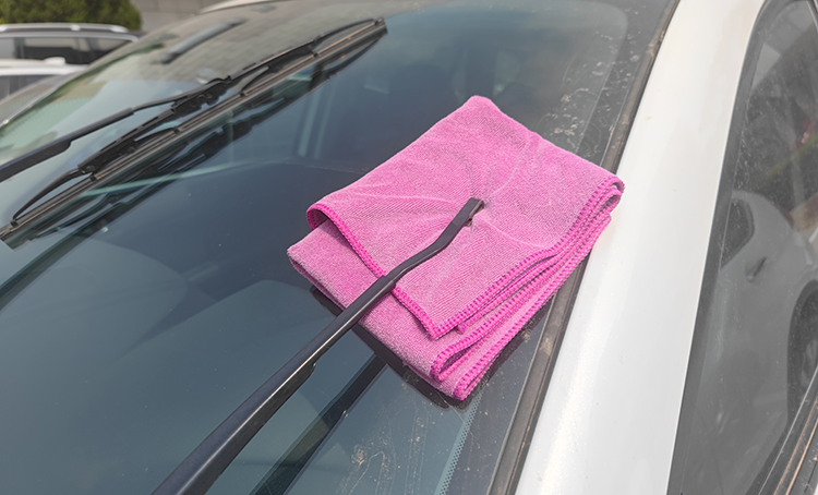 03 用抹布垫在雨刮臂下,将雨刮臂放回至风挡玻璃表面,这样可以避免雨刮臂意外回弹时造成风挡玻璃受损;
