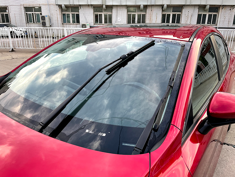 05 将安装好的雨刮片轻轻放回风挡玻璃表面,然后将雨刮开关打开至清洗模式,测试新雨刮片的刮擦效果(如设置有雨刮维修模式,打开点火开关时该模式将自动退出,雨刮器回到初始位置)。