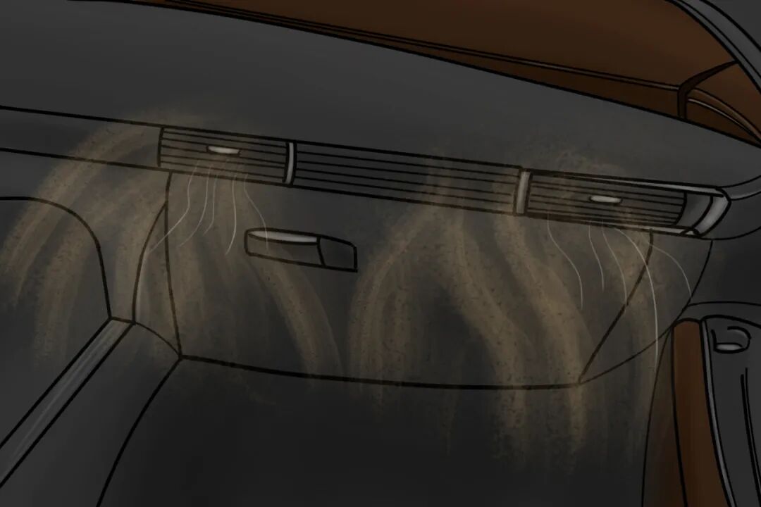 在空调系统正常工作时,蒸发箱是在冷环境中工作,遇到外界相对的热空气就会产生水,因此,蒸发箱和通风管道的潮湿环境和表面的灰尘为霉菌和真菌的滋生提供了温床,霉菌和真菌会很快繁衍为霉菌团和真菌团,产生生物体腐烂性异味,这些异味会随着空调的打开,夹杂在冷气当中,污染整个车厢内部,也就是我们平常闻到的异味来源。