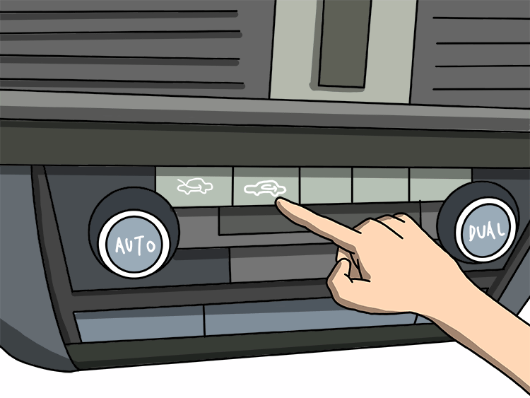 当车辆在花园、沙尘道路等空气粉尘严重区域,请及时按下空调内循环按键,空调将停止与车外交换空气,待车辆离开以上环境后,可打开空调外循环模式,给车内带来新鲜空气。