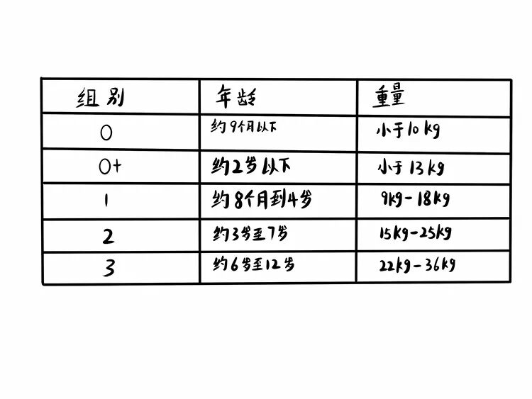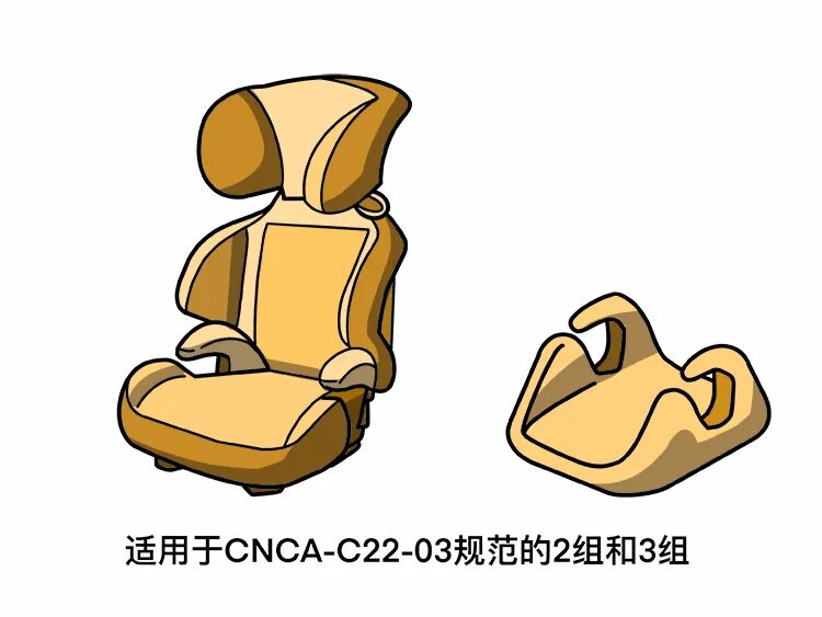 根据CNCA-C22-03 规范,儿童安全椅系统可以被分为如下5组。