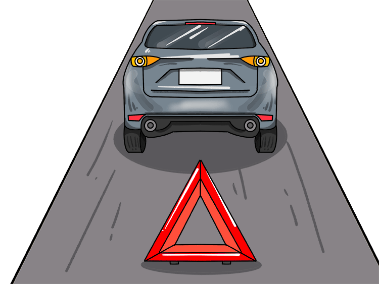 最后从后备箱内拿出三角警示牌放置在车后50~100米的位置。