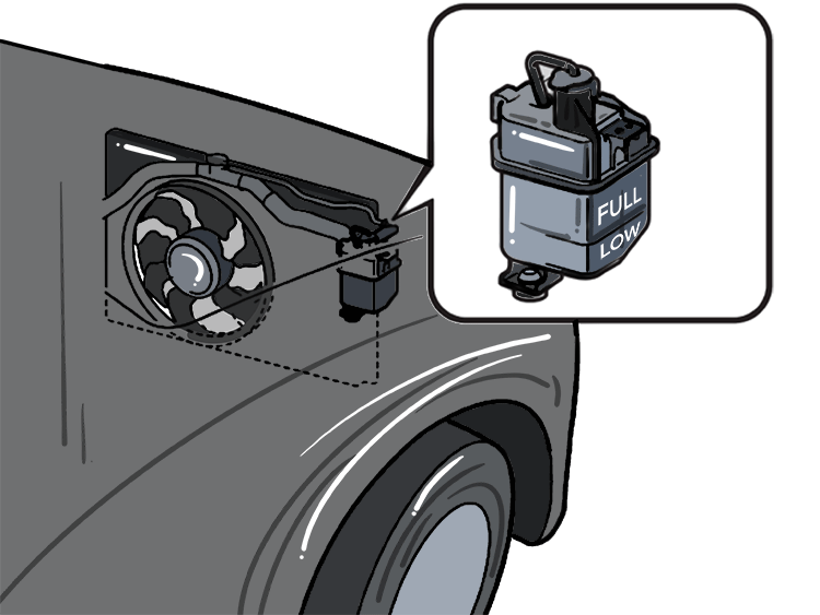 汽车正常行驶时,通过冷却液使发动机保持在最佳工作温度范围内。冷却液缺失后容易引起发动机高温,机油润滑性能下降,导致发动机机械故障。冷却液液位应在FULL与LOW标记之间。