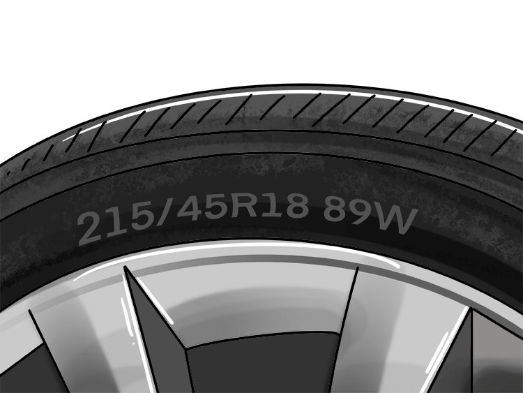 了解轮胎的规格以后,我们在购买轮胎的时候就知道所需的型号了,如上图中所示,该轮胎的规格为215/45 R18 89W: