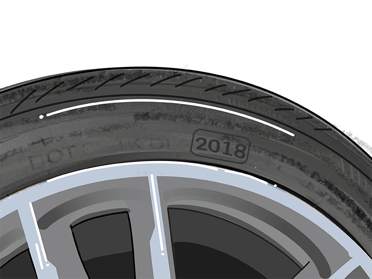轮胎的生产日期位于胎侧,由4位数字组成,前2位表示生产时的周数,后2位表示生产年份。下图中轮胎生产日期为2018年第20周。
