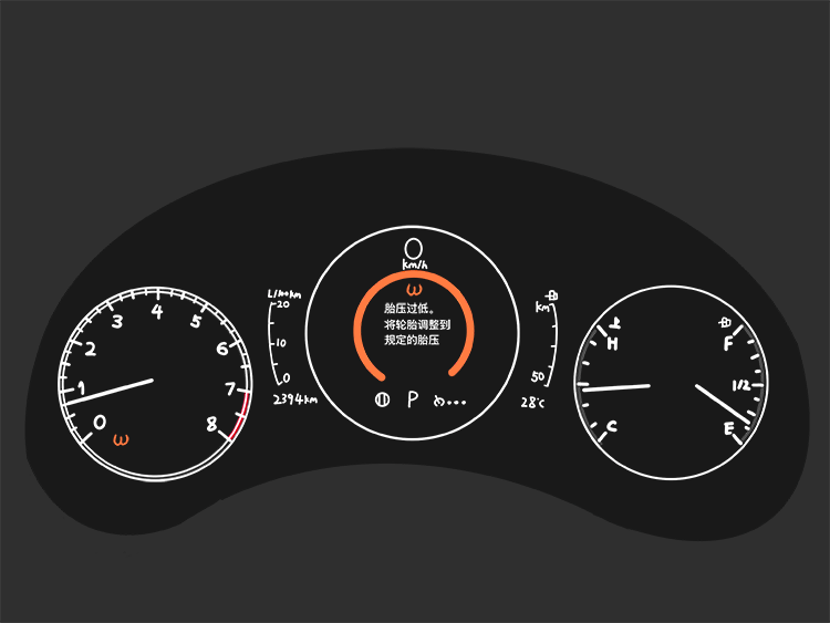 您在驾车途中,如果遇到胎压监测系统警报信号灯点亮,建议减速行驶并打开危险警告指示灯(双闪),先将车辆停靠在安全的地方,然后目测检查仪表提示出现问题的轮胎,并按以下情况进行处理: