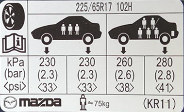 通常出厂胎压会高于标准胎压, 所以提车后应将四轮胎压调整至门框处铭牌所示的标准胎压,才能确保车辆处于理想舒适性状态。