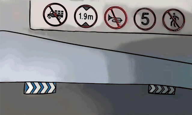 首先要注意车速,同时将车辆保持在车道中间位置(仅适用于单向车道),与两侧墙壁保持均等距离;