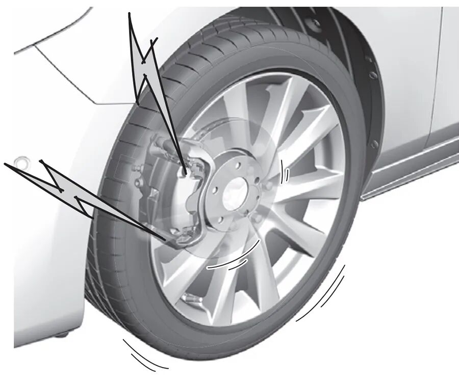 车辆在潮湿环境或涉水后,如制动时车轮处传来尖锐的啸叫声,通常不代表制动部件出现故障。这是由于水分停留在制动盘和制动片之间,暂时降低了制动部件的摩擦系数。在这种条件下采取制动,制动盘、片之间会出现间歇性滑移,便会发出尖锐的摩擦异响。建议您在涉水行驶后进行几次缓加速再制动的过程,通过车轮旋转和制动摩擦,让附着在制动盘、片上的水分被甩干或蒸发。