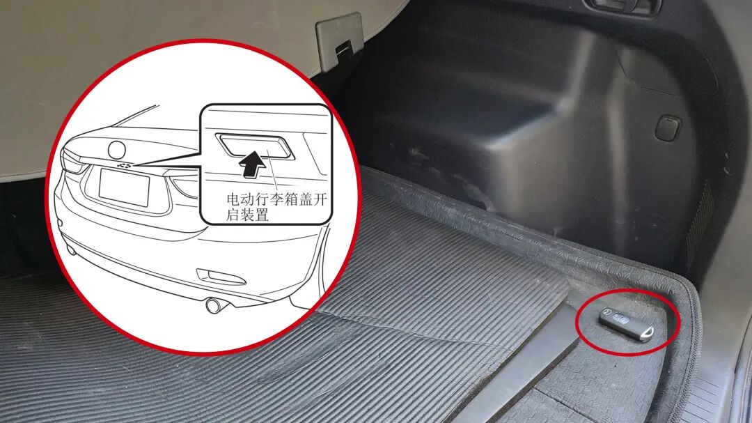 在这种情况下,可以通过按下电子开启装置的方式打开后备箱并取出钥匙,但取出的钥匙功能会暂时停止。