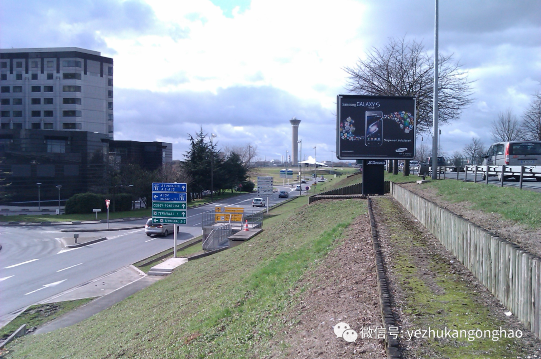 酒店外面,路上的车基本就是法国的雪铁龙和标志,极少见到其他国家的车,远处可以看到一架已经退役的协和飞机处于起飞的状态雕塑,但这其实是实物