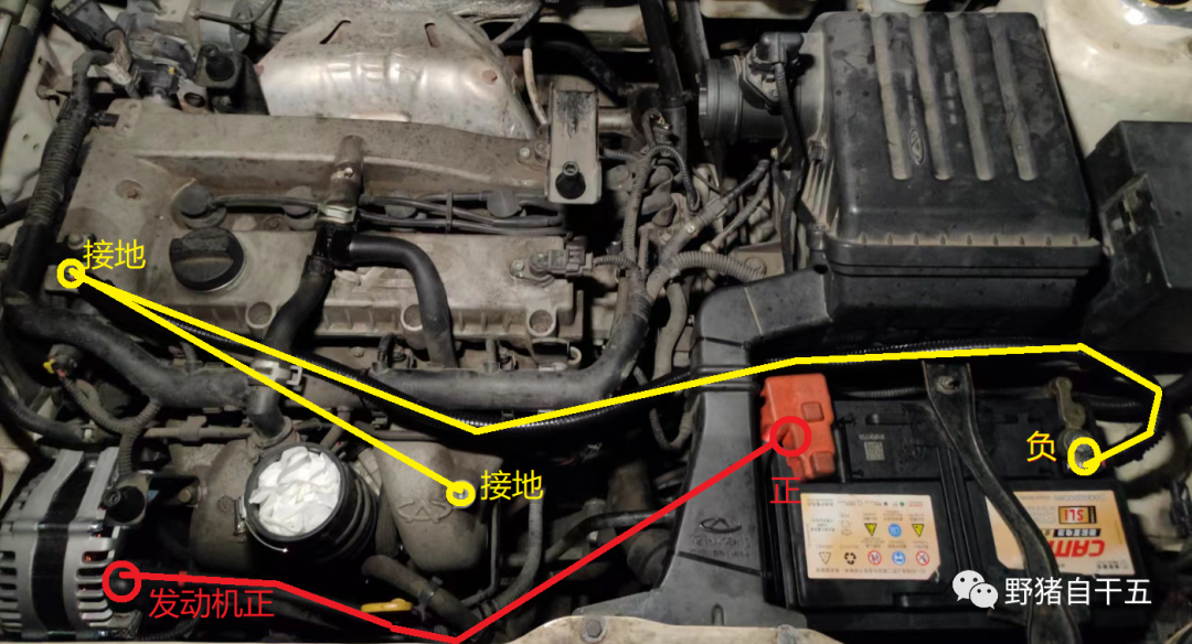 根据上面电路图,虽然电瓶的正负极电压降问题解决了,但是车上其他用电器辅载的正负极压降并未处理,也不容易一一排查,只能等哪个电器出现异常后再逐个处理了