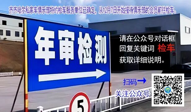 从2022月12月8日开始,齐齐哈尔私家车俱乐部与市内三家检车机构正式达成协议,会员去这三个地方检车,可享受团体协议价。本俱乐部公众号现有2万1千多名本地车友关注,还有20个车友群,是全市最大的车友群体。请问收会费么?收那玩意儿干啥!