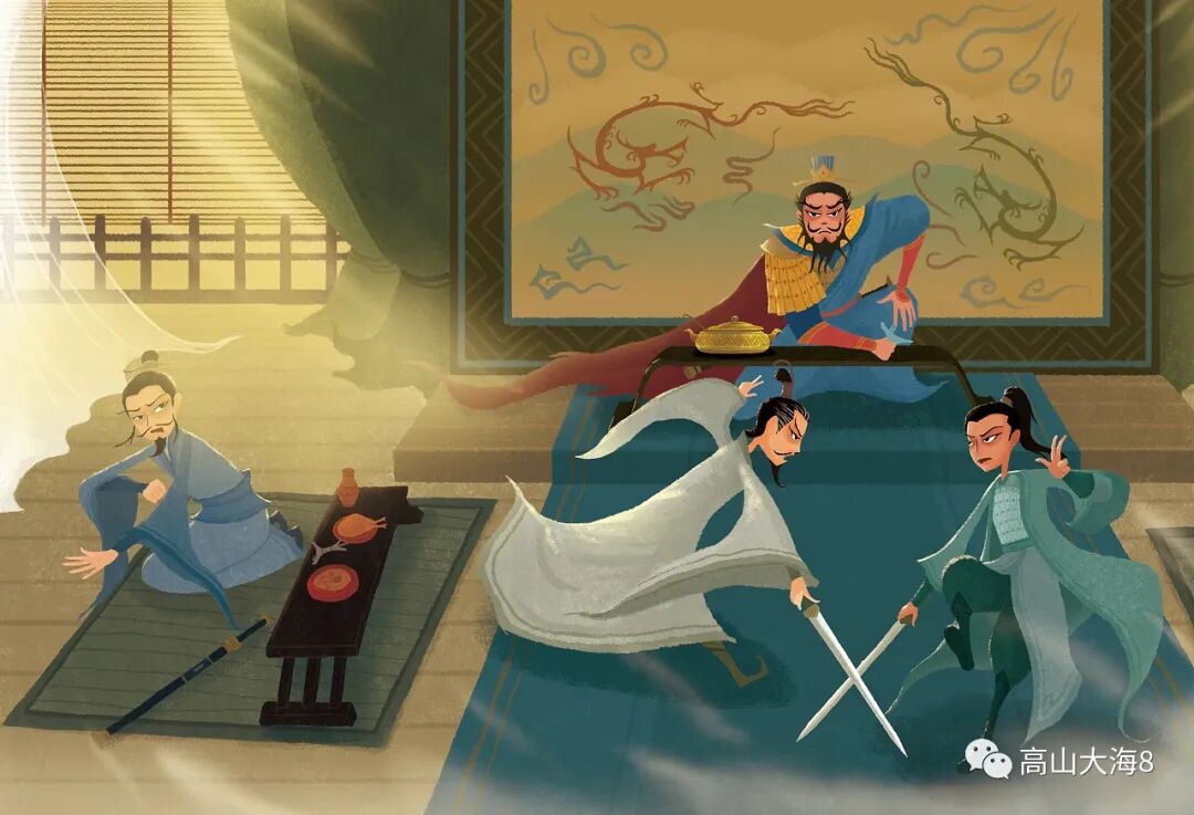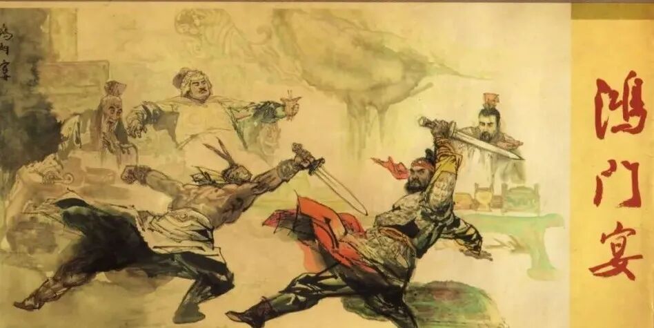 沛公旦日从百余骑来见项王,至鸿门,谢曰:“臣与将军戮力而攻秦,将军战河北,臣战河南,然不自意能先入关破秦,得復见将军于此。今者有小人之言,令将军与臣有郤……”项王曰:“此沛公左司马曹无伤言之;不然,籍何以至此。”项王即日因留沛公与饮。项王、项伯东向坐,亚父南向坐。亚父者,范增也。沛公北向坐,张良西向侍。范增数目项王,举所佩玉玦以示之者三,项王默然不应。范增起,出召项庄,谓曰:“君王为人不忍。若入前为寿,寿毕,请以剑舞,因击沛公于坐,杀之。不者,若属皆且为所虏。”庄则入为寿。寿毕,曰:“君王与沛公饮,军中无以为乐,请以剑舞。”项王曰:“诺。”项庄拔剑起舞,项伯亦拔剑起舞,常以身翼蔽沛公,庄不得击。