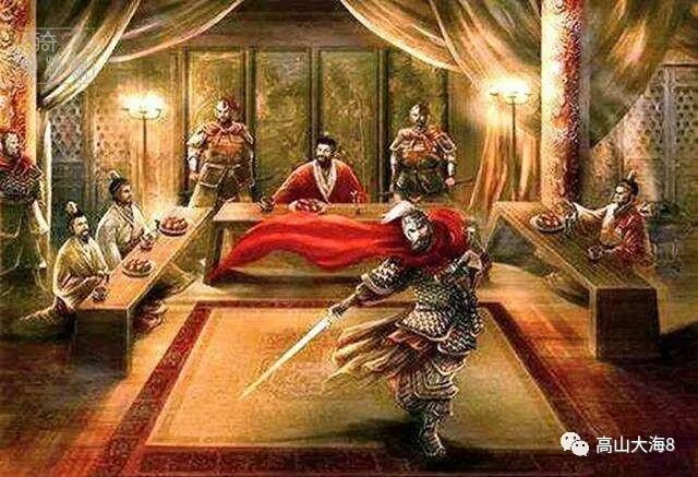 刘邦第二天带领一百多人马来见项羽,到达鸿门,谢罪说:“我和将军合力攻打秦国,将军在黄河以北作战。我在黄河以南作战,然而自己没有料想到能够先入关攻破秦国,能够在这里再看到将军您。现在有小人的流言,使将军和我有了隔阂……”项羽说:“这是你左司马曹无伤说的。不是这样的话,我怎么会这样呢?”项羽当天就留刘邦同他一起饮酒。项羽、项伯面向东坐;亚父面向南坐──亚父这个人,就是范增;刘邦面向北坐;张良面向西陪坐。范增多次使眼色给项羽,举起(他)所佩带的玉玦向项羽示意多次,项羽默默地没有反应。范增站起来,出去召来项庄,对项庄说:“君王为人不狠心。你进去上前祝酒,祝酒完了,请求舞剑助兴,趁机把刘邦击倒在座位上,杀掉他。不然的话,你们都将被他所俘虏!”项庄就进去祝酒。祝酒完了,说:“君王和沛公饮酒,军营里没有什么可以娱乐,请让我用舞剑助兴吧。”项羽说:“好。” 项庄就拔出剑舞起来。项伯也拔出剑舞起来,常常像鸟张开翅膀一样,用身体掩护刘邦,项庄得不到(机会)刺杀(刘邦)。
