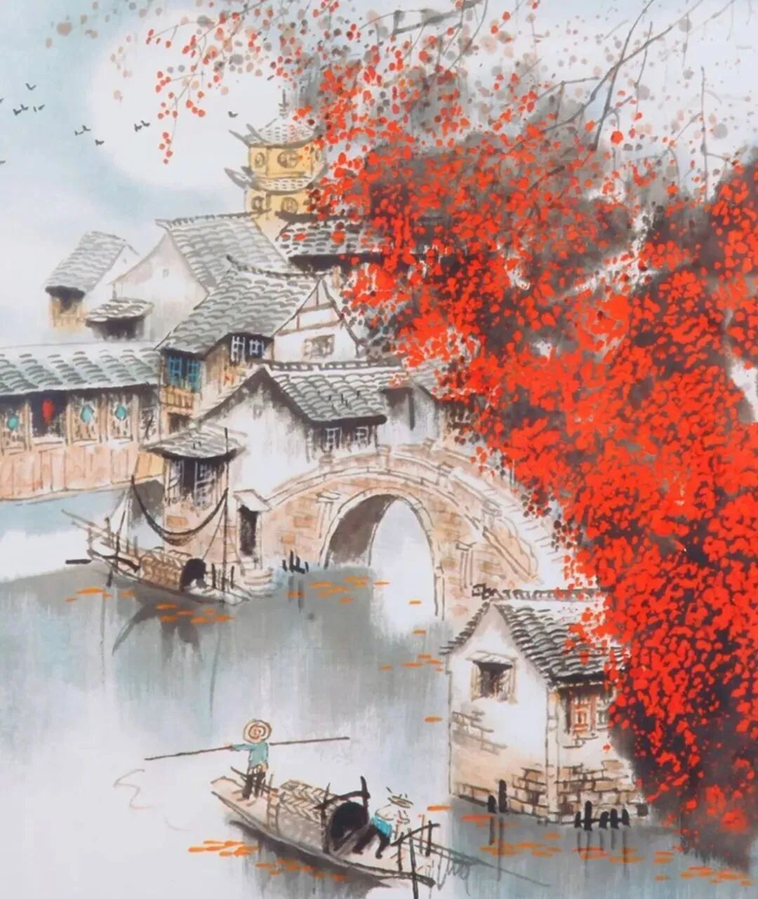 江南的春色,在白居易的笔下,从初日,江花,江水之中获得了色彩,又因烘染、映衬的手法而形成了人们想象中的图画,色彩绚丽耀眼,层次丰富,几乎无需更多联想,江南春景已跃然眼前。