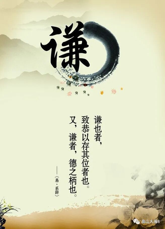 “谦”的本质含义是一种永不自满,永远进取的精神,与退让消极以及形式上的谦逊骨子里却狂妄自大的伪君子作风是不相干的。谦有如大海,已然宽广博大矣,却位于百川之下而容纳百川。