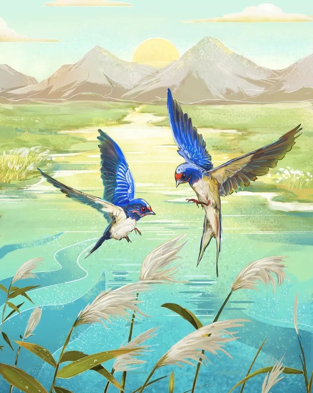 白露节气,暑气渐消,秋高气爽,丹桂飘香,鸿雁和燕子等候鸟开始南飞避寒,各种鸟类开始贮存过冬的食物。