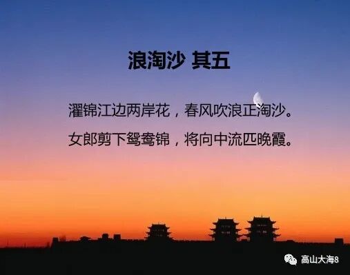 7.鹦鹉洲:原在武昌一带长江中。唐诗人《黄鹤楼》诗有"芳草萋萋鹦鹉洲"之句。