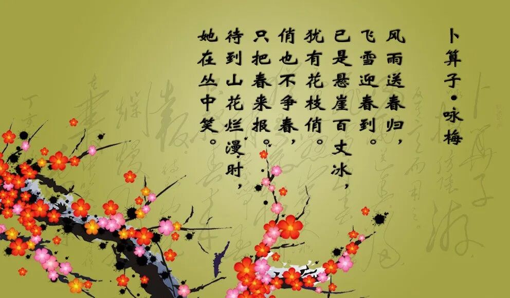 《卜算子·咏梅》是南宋词人陆游创作的一首词。这是一首咏梅词,上片集中写了梅花的困难处境,下片写梅花的灵魂及生死观。词人以物喻人,托物言志,以清新的情调写出了傲然不屈的梅花,暗喻了自己虽终生坎坷却坚贞不屈,达到了物我融一的境界,笔致细腻,意味深隽,是咏梅词中的绝唱。